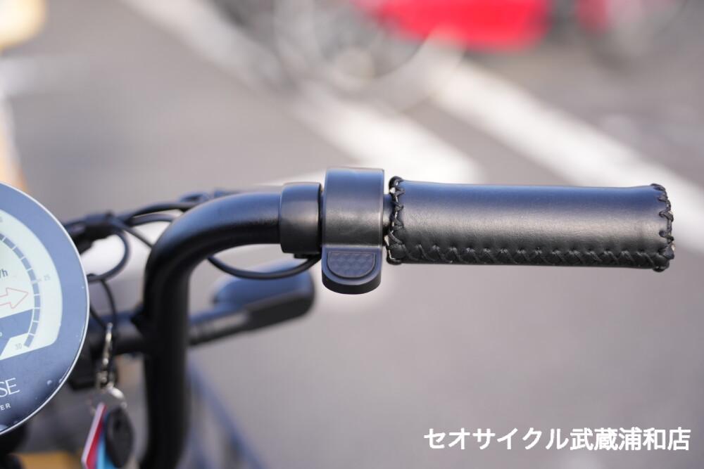 左手側にはウインカー、ホーン、パワーモード切替スイッチ。右手側にはスロットルが配置され、初めての方でもすぐに馴染めます。