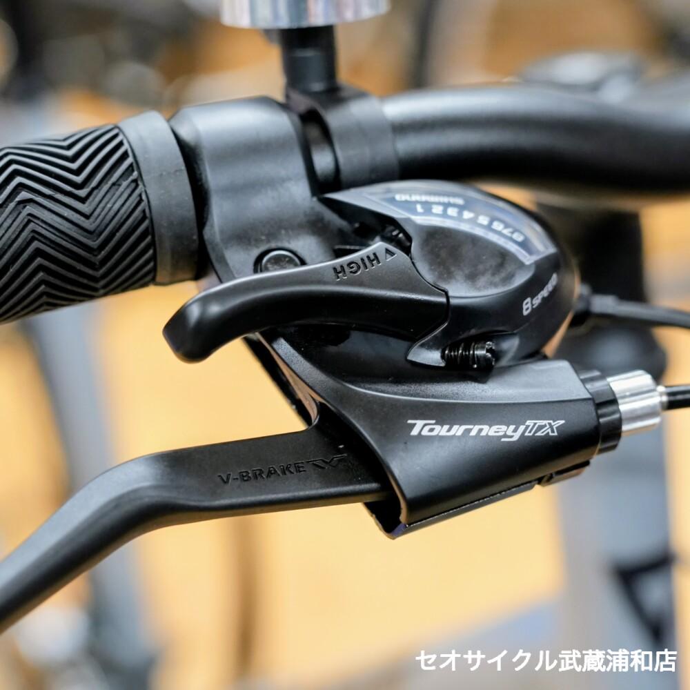 変速機には「SHIMANO Tourney TX」を採用。カチカチと正確に決まる変速は、ストレスフリーな走りを約束します。