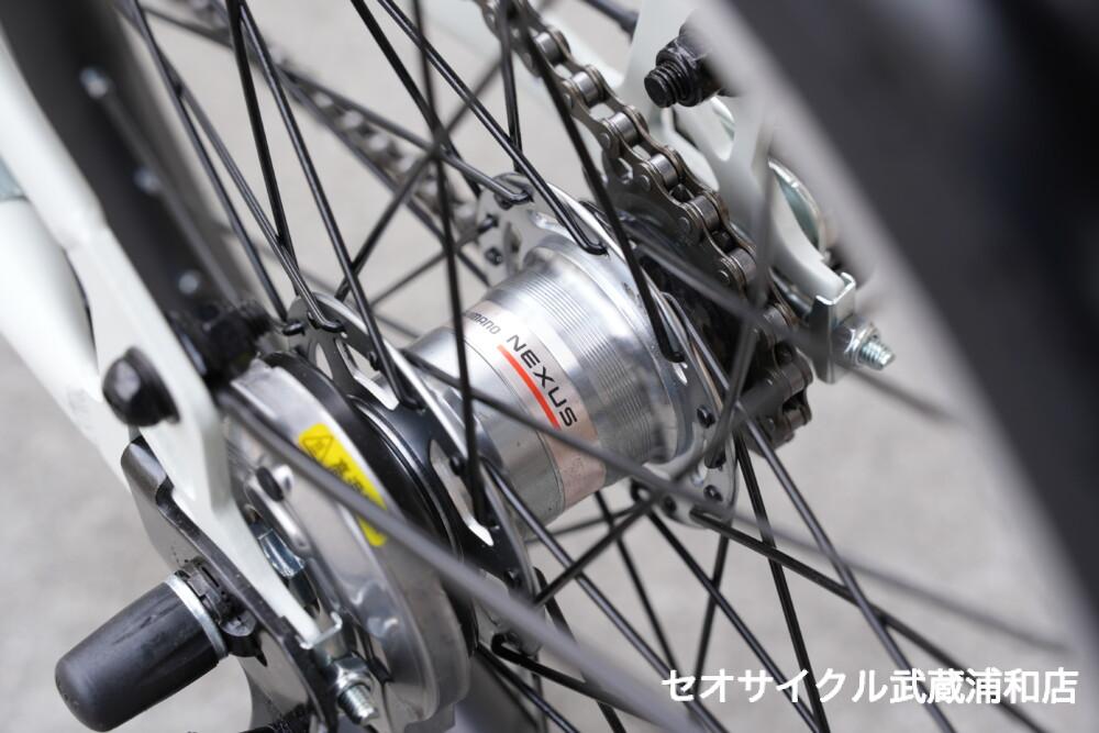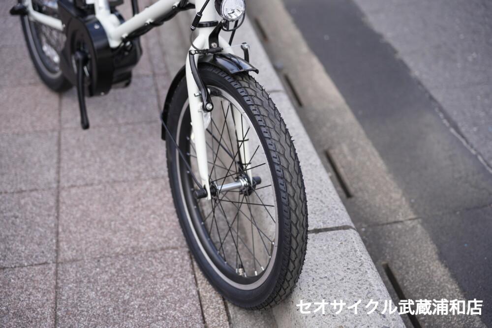 そこに組み合わされるのは、あえての太めタイヤ(20×2.125)! 見た目のインパクトはもちろん、段差の衝撃もしっかり吸収してくれるので、石畳や歩道の段差もストレスなく進めます。